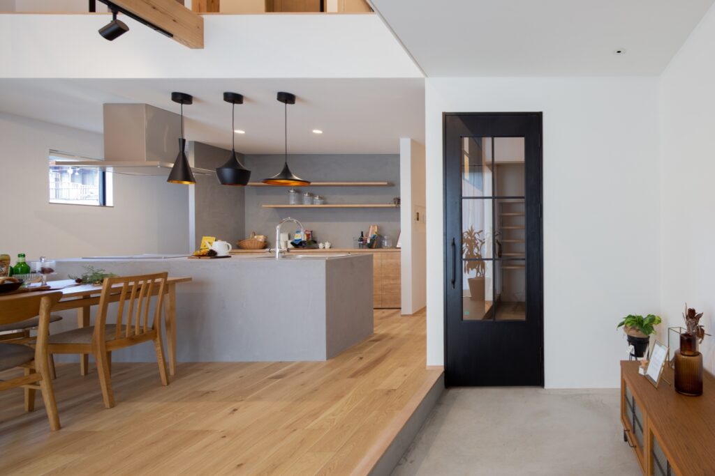 この住まいの特徴は、玄関からリビングまでまっすぐ抜ける“通り土間”。