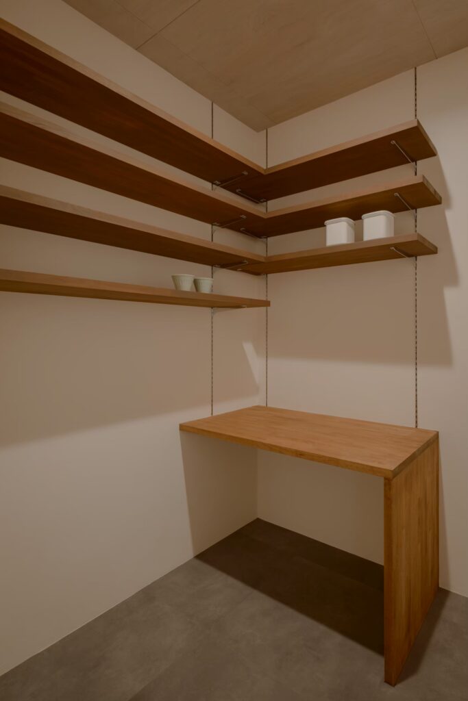 背面にはたっぷりと使えるパントリーを備え、見た目も使い勝手も両立しています。