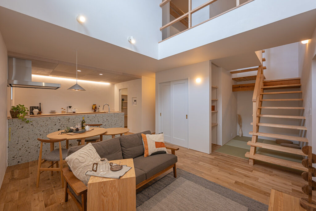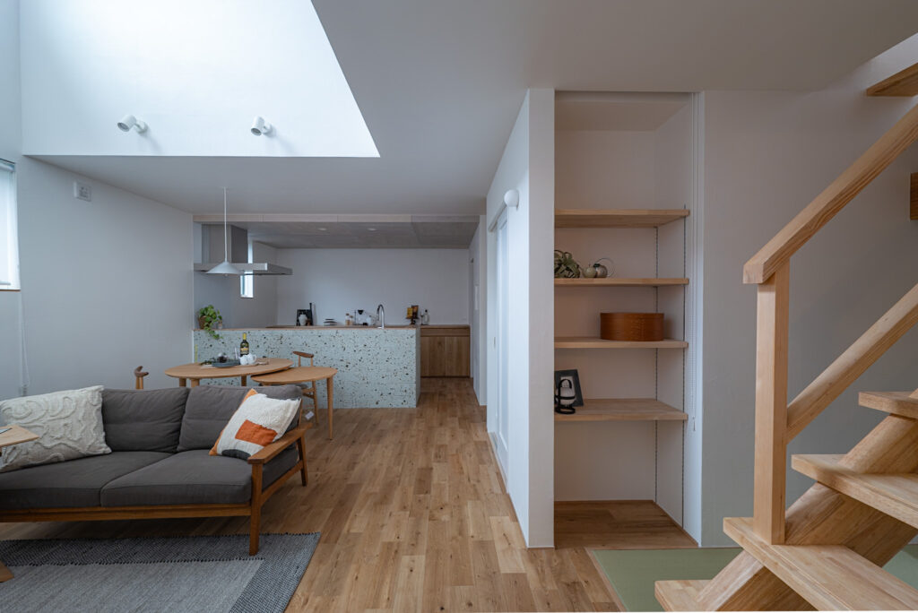 Works施工事例 トップ 施工事例 鹿児島市H邸 鹿児島市H邸 フルオーダー 更新日 : 2026/01/08 鹿児島市谷山中央 #ウォークインクローゼット #シューズクローク #ストレイタ #ママ目線 #モールテックス #収納たっぷり #吹抜け #和室 #対面キッチン #洗面所・脱衣所が別々 #独立洗面台 #自然素材 #造作家具 #造作建具 #間取り重視 前の記事へ 施工事例一覧 おすすめの施工事例 毛髪改善クリニックサロンtrico様店舗 店舗デザイン 日置市O邸 フルオーダー 鹿児島市S邸 フルオーダー 一覧へ戻る